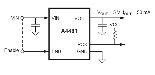 The A4481 is a robust 5V LDO regulator designed for automotive environments. It offers 50mA output current, load dump and short-to-battery protection, and a power-OK flag for enhanced system reliability.