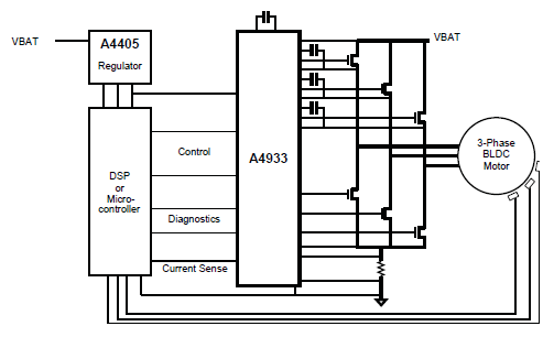 The A4933 offers a robust and reliable solution for automotive motor control, with integrated current sensing, adjustable dead time, and comprehensive diagnostics for enhanced performance and reliability up to 50V.