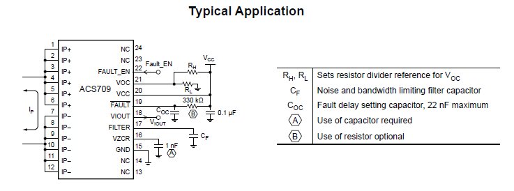 - Integrated shield greatly reduces capacitive coupling from current conductor to die due to high dV/dt, and prevents offset drift in high-side applications