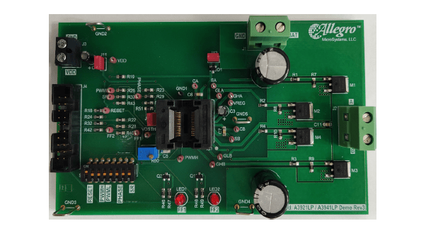 Accelerate your design and validation process for the A3921 full-bridge controller. The APEK3921KLP-01-T evaluation board provides a complete, ready-to-use platform for testing high-power automotive brush DC motors, allowing you to quickly verify performance in a real-world environment.